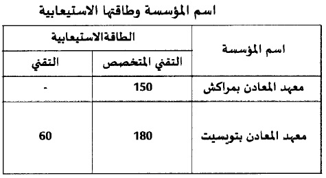 | معهد المعادن بتويسيت | معهد المعادن بتويسيت عبر وجدة الرمز البريدي 64850 | – | 0536654003 | 0536654096 |