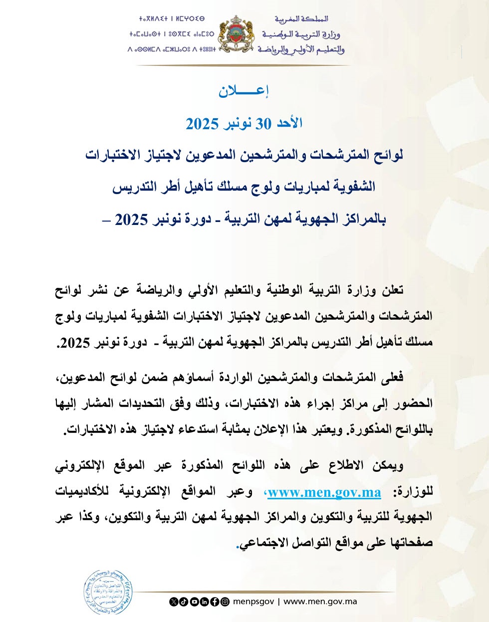 | لوائح المترشحات والمترشحين الخاصة بالأكاديمية الجهوية للتربية والتكوين لجهة الشرق |