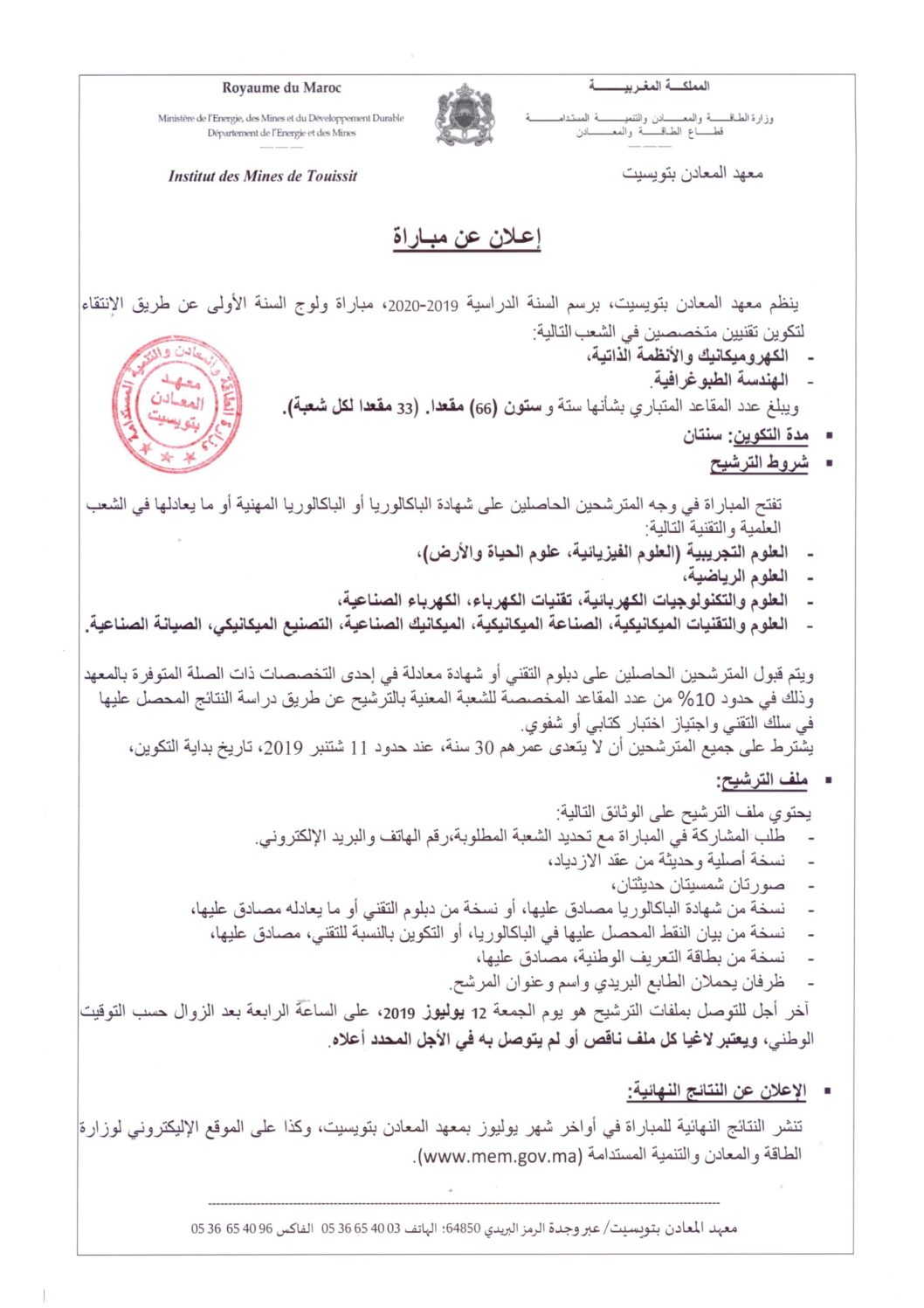 مباراة ولوج معهد المعادن بتويسيت 2019/2020