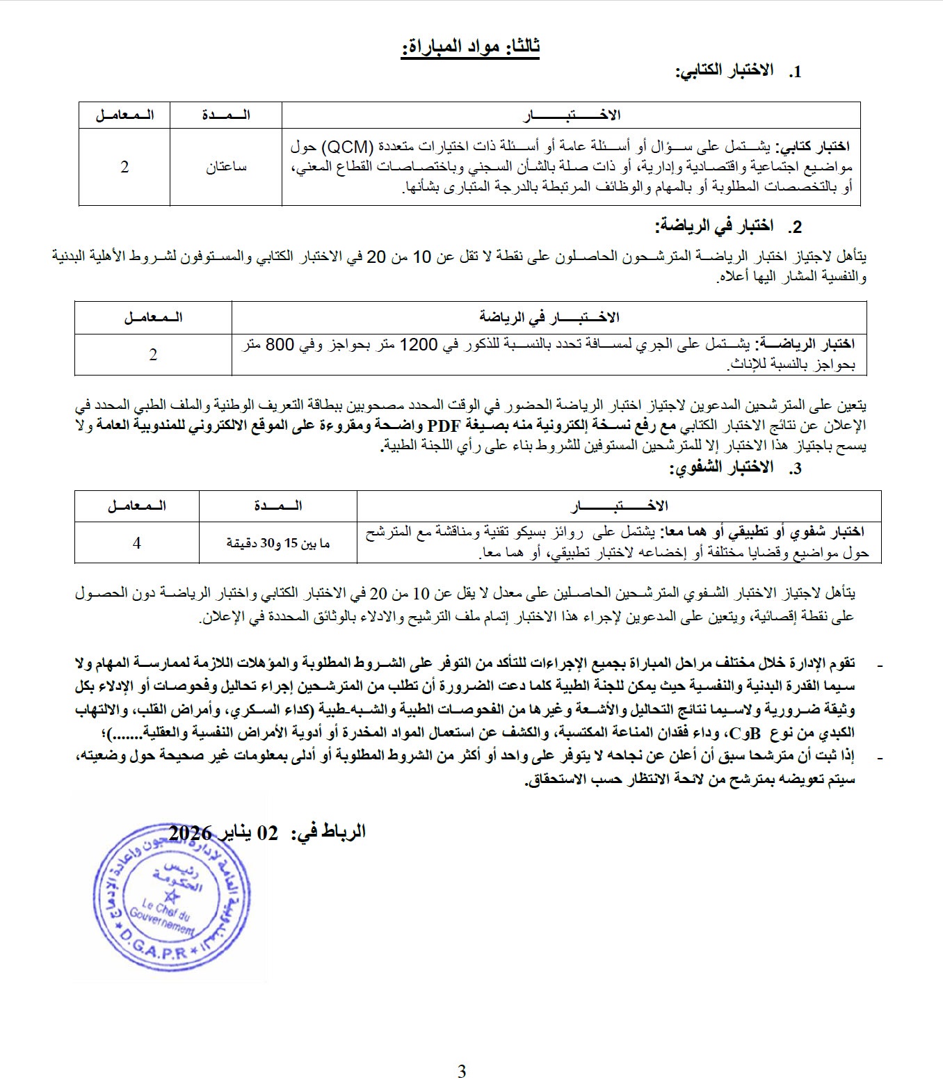 مباراة لتوظيف 1620 مراقب السجون مساعد من الدرجة الثانية – 2026