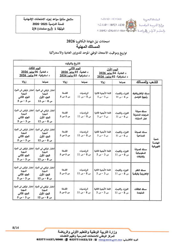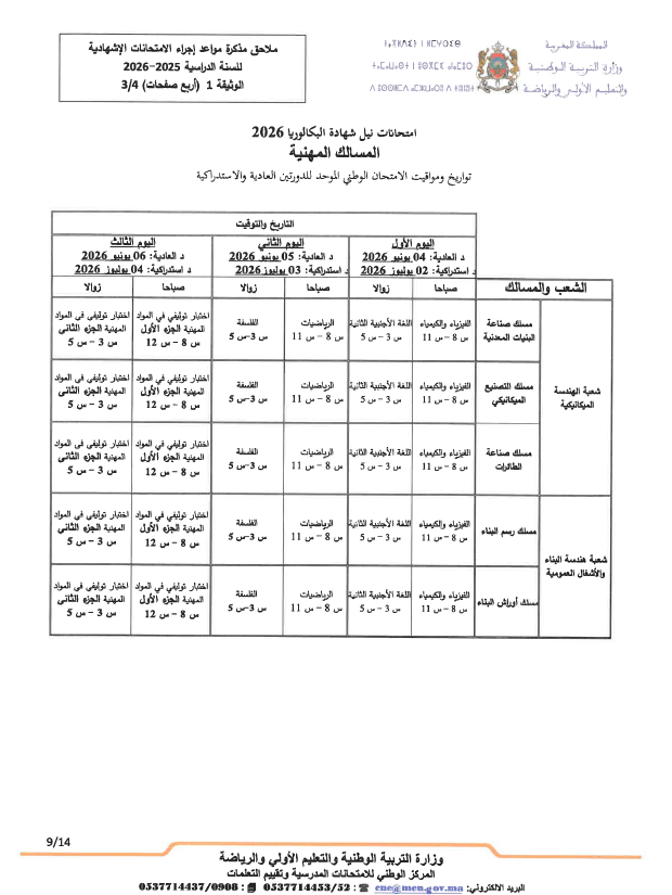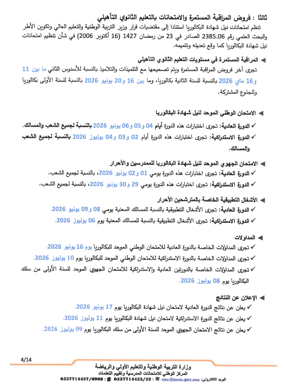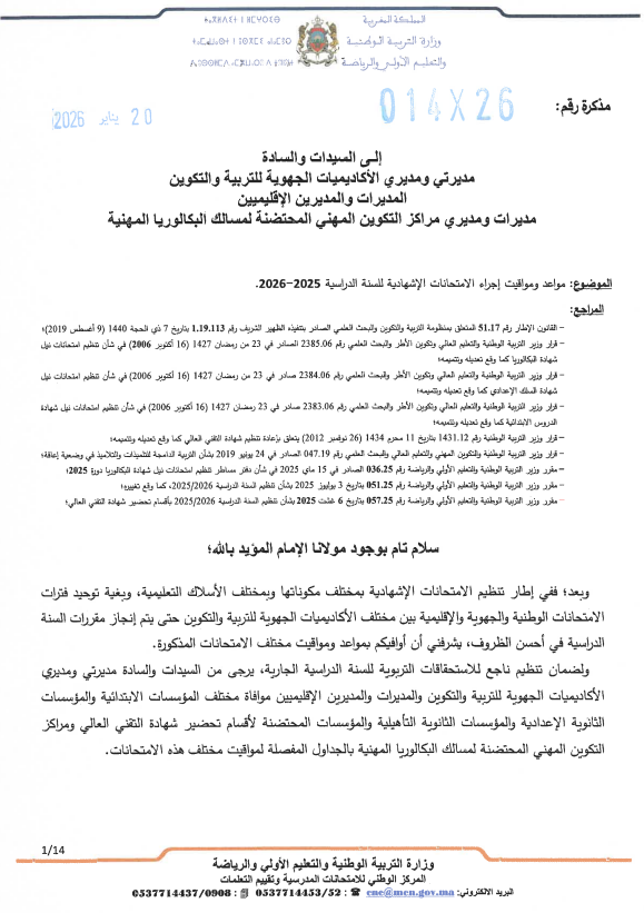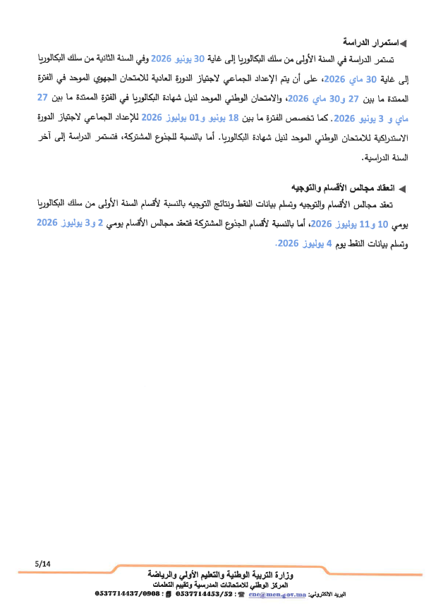 - تجرى المداولات الخاصة بالدورة العادية للامتحان الوطني الموحد للبكالوريا يوم 16 يونيو 2026.