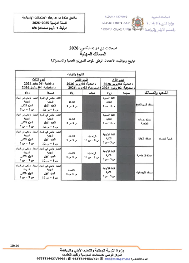 - تجرى المداولات الخاصة بالدورة الاستدراكية للامتحان الوطني الموحد للبكالوريا يوم 10 يوليوز 2026.