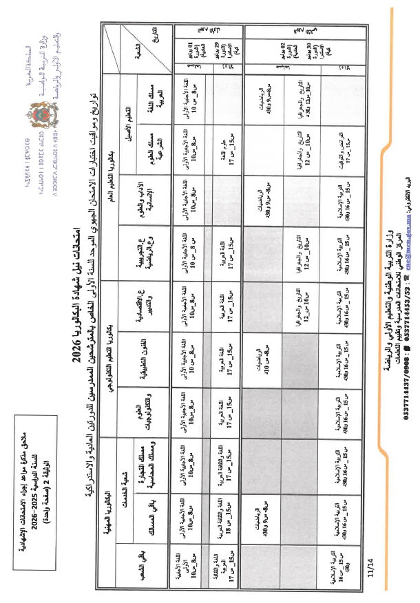 مواعد ومواقيت إجراء الامتحانات الإشهادية للسنة الدراسية 2025-2026- الثانوي التأهيلي