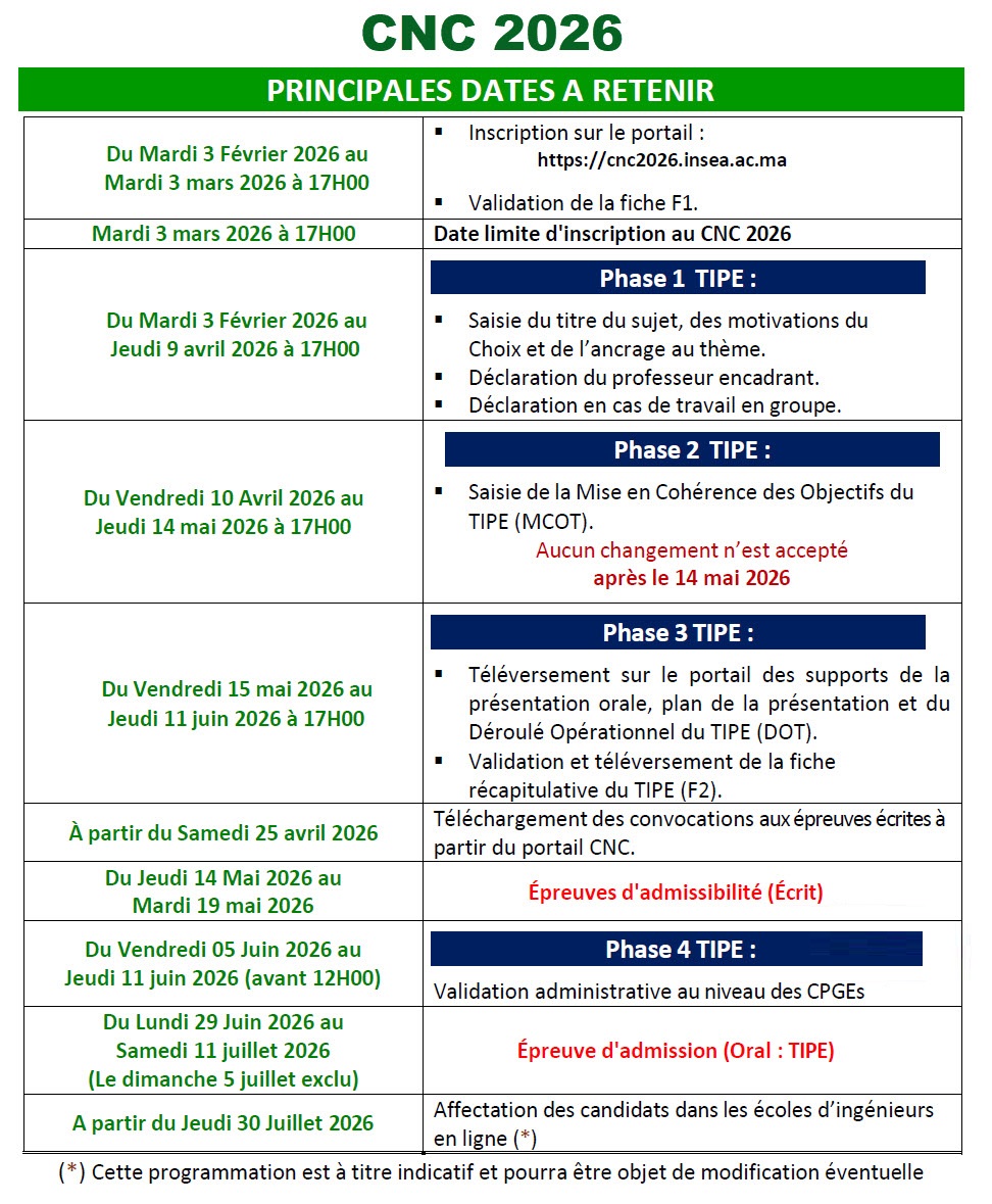 La Présidence du Concours National Commun (CNC 2025) a annoncé la Notice et le Règlement des inscriptions au CNC 2025 d’admission dans les établissements de formation d’ingénieurs et établissements assimilés .